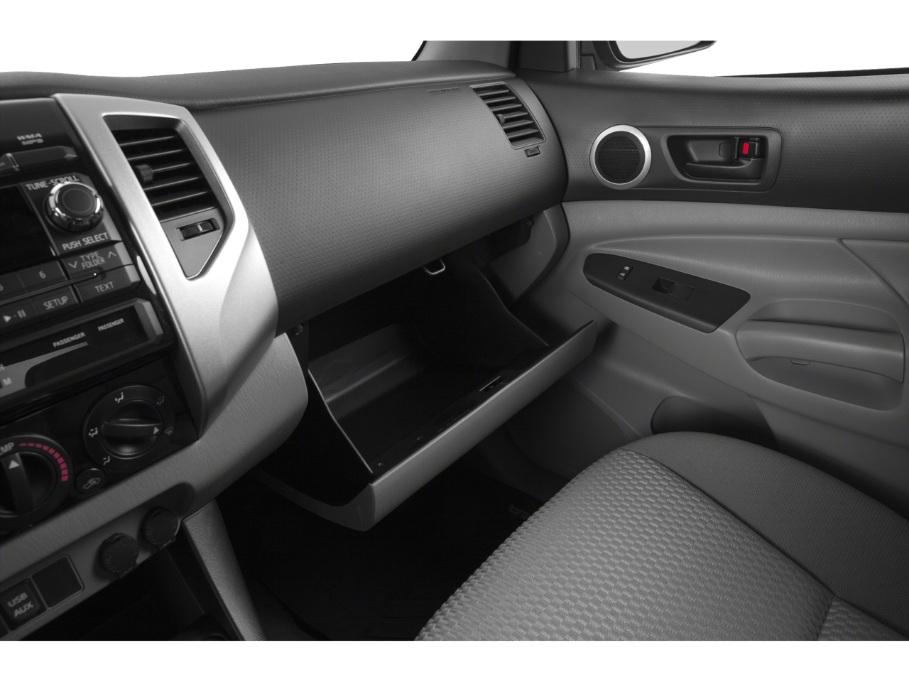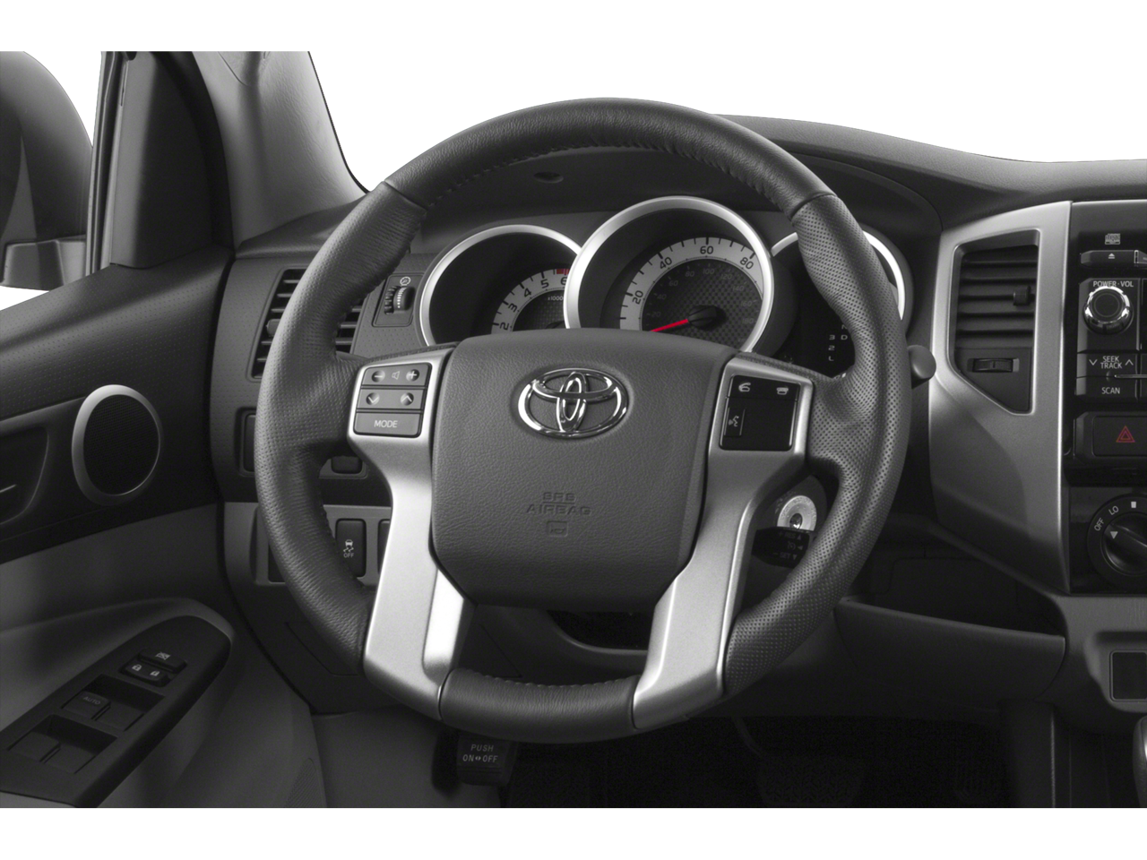 TRD OFF-ROAD PACKAGE Hill Start and Downhill assist controls, TRD Off-Road Graphics, Locking Rear Differential, Active Traction Control (A-TRAC), Metallic Tone Instrument Panel Trim, Tailgate-Handle Integrated Backup Camera, Remote Keyless Entry System, Cruise Control, Chrome Grille Surround & Rear Bumper, Wheels: 16 Alloy, Front Tow Hook, Tires: P265/70R16 BF Goodrich, 115V/400W Deck Powerpoint, 2- instrument panel plus 1 deck, Bilstein Shocks, Leather-Wrapped Steering Wheel & Shift Knob, Engine Skid Plate, Variable Speed Wipers, Off Road Tuned Suspension, Color-Keyed Front Bumper & Overfenders, color-keyed overfenders, Front Fog Lamps, Sliding Rear Window, Privacy Glass, Dual Sunvisors w/Mirrors & Extenders, Sport Seats, driver 4-way manual lumbar support, RADIO: ENTUNE PREMIUM AUDIO W/NAVIGATION AM/FM w/caching, CD player w/MP3/WMA playback capability, high-resolution 6.1 touch-screen w/split-screen display, auxiliary audio jack, USB 2.0 port, iPod connectivity and control, Gracenote album cover art, Bluetooth® hands-free phone capability, phone book access, advanced voice recognition and music streaming, Entune App Suite, includes Bing, iHeartRadio, MovieTickets.com, OpenTable, Pandora, Yelp and Facebook Places; real-time info including traffic, weather, fuel prices, sports and stocks, SiriusXM Satellite Radio, HD Radio, HD predictive traffic and Doppler weather overlay, OFF ROAD TOWING PACKAGE Class IV Hitch, HD Battery, 7-Pin Connector w/Converter, Trailer Sway Control, 130 Amp Alternator, Supplemental Oil Cooler, Transmission Oil Cooler. Toyota Tacoma with Super White exterior and GRAPHITE interior features a V6 Cylinder Engine with 236 HP at 5200 RPM*.